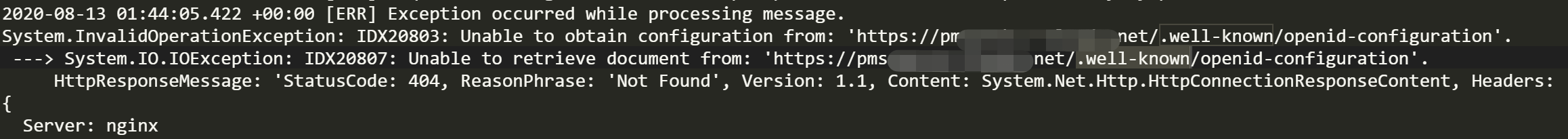 根据以上日志提示,我在浏览器中打入https://{域名}/.well-known/openid-configuration,发现还真的是404,马上使用IP地址(https:/{ip:port}/.well-known/openid-configuration)发现有内容!!总算找到不同了!