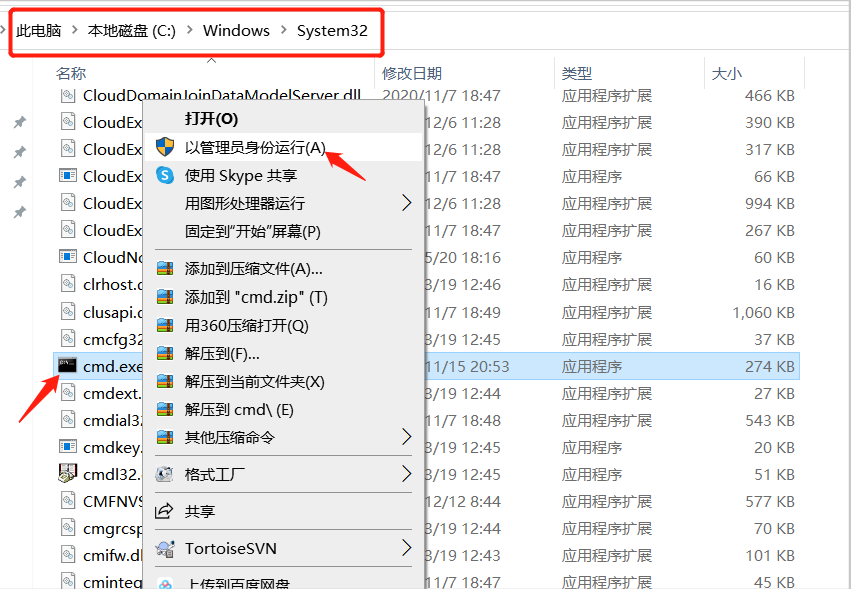 则需要以管理员身份运行cmd窗口,在C://windows/System32/文件夹下右键点击cmd.exe,选择以管理员身份运行,再次输入上面的命令即可