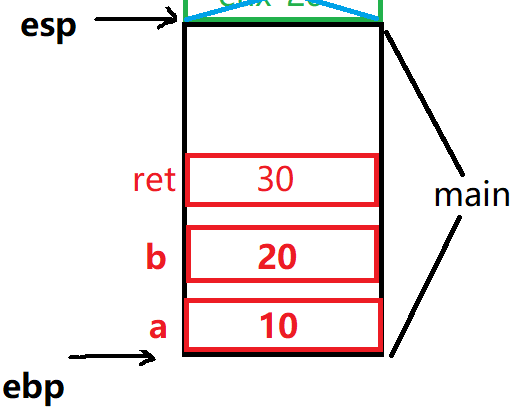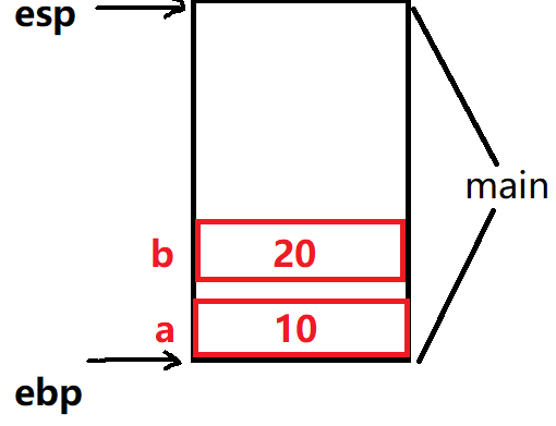 程序开始运行的时候,OS为在栈上为 main函数开辟一块空间,然后在栈上存放局部变量