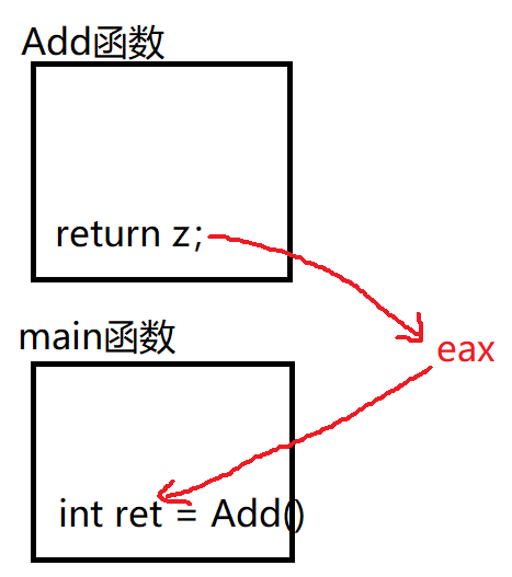 总的来说就是,Add函数将结果存放在 eax 寄存器中,回来的时候再赋值给ret