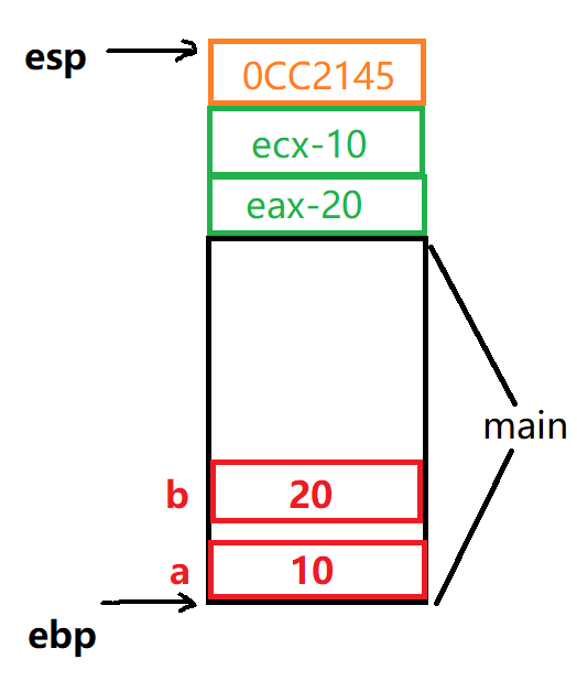 由于要用到参数x 、y,程序会到ebp+8的位置,即 ecx 寄存器,去取值