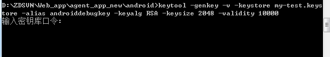 keytool -genkey -v -keystore my-test.keystore -alias androiddebugkey -keyalg RSA -keysize 2048 -validity 10000