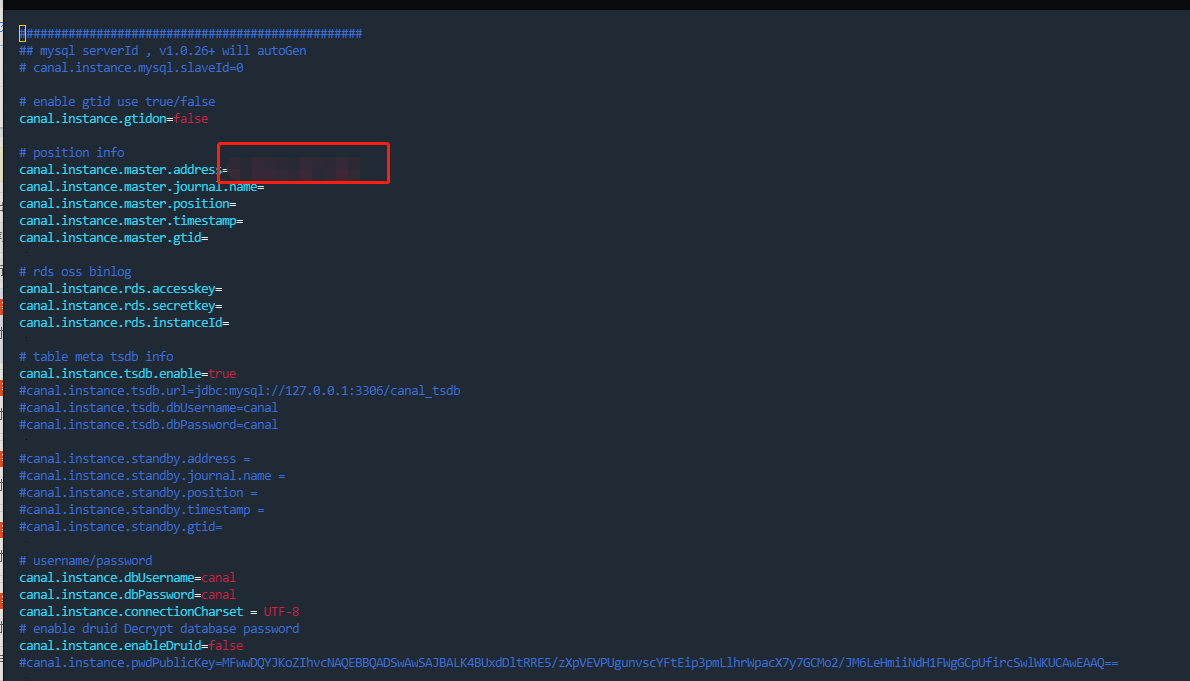 然后进入到我们canal.deployer的文件目录下打开conf/example/instance.properties