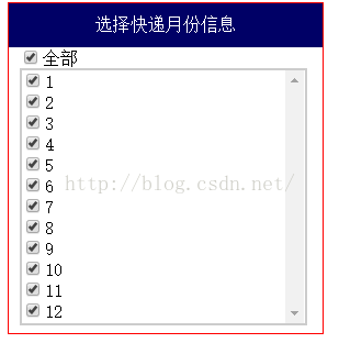 注意: 该方法是使用div的方式写的,因为html中有规定,select标签下的option中不能再添加其他标签,所以也无法添加复选框,因此是无法用select和option来写。