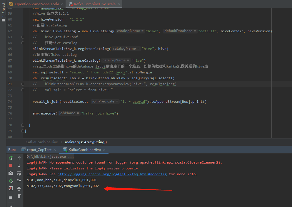 这是一个最简单的关联场景。没有往kafka或者hdfs里sink;