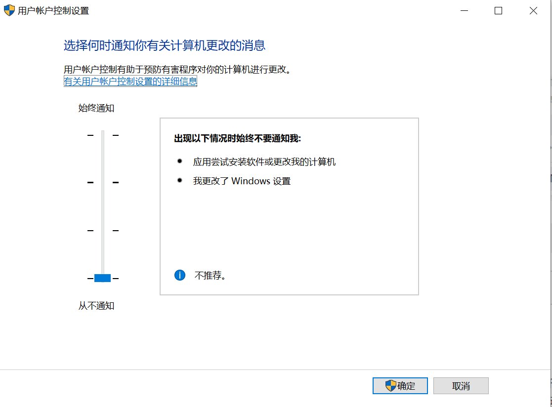 1.首先是 打开控制面板->用户账户->用户账户->更改用户账户控制设置