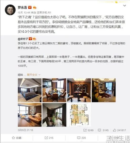 罗永浩本身对于直播的看法是十分的全面的。像是之前有李佳琦购买豪宅的消息,罗永浩的评价也是非常的客观。毕竟这是一场买卖,我们不能因为眼红而去责怪诬陷别人赚的是昧心钱。