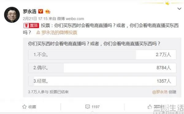 不过还是有大神对于这一次的事情分析和爆料,说罗老师不久将会进军直播行业,并且在淘宝当中做直播带货。但是这一种说法其实并不属于无端猜测,因为早在二月份,罗永浩就在微博上面发起了一次投票,选择询问广大的网友朋友们是否会观看电商直播。而且他也表示自己过一段时间将会定期的直播。