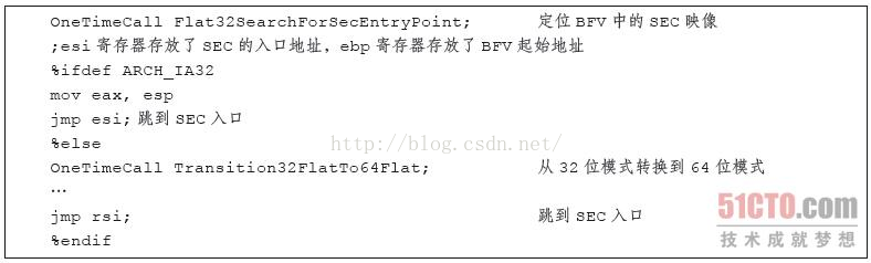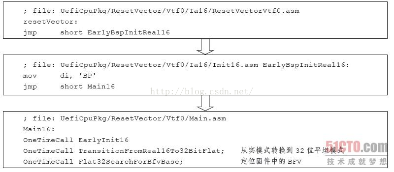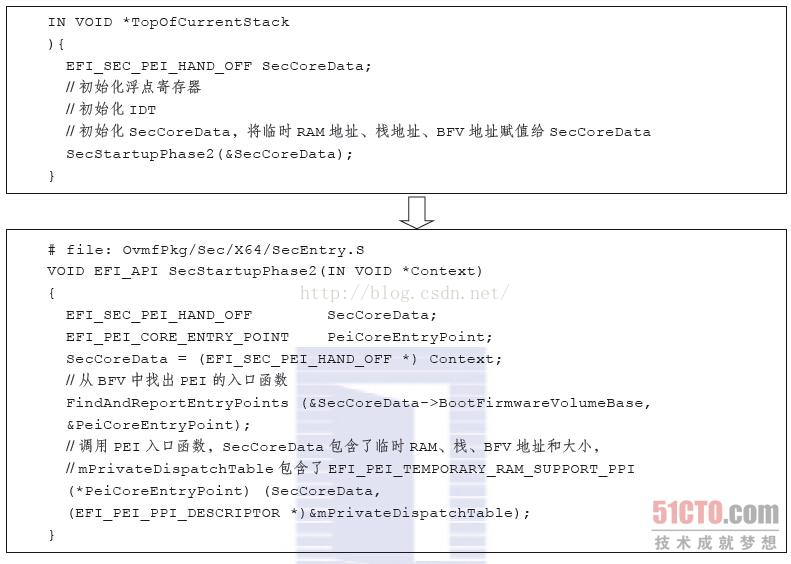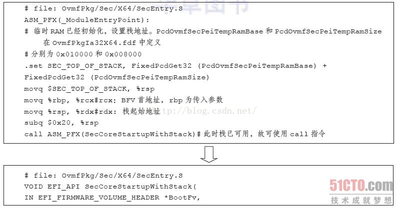下面的代码描述了从固件入口Reset Vector到SEC入口函数的执行过程: