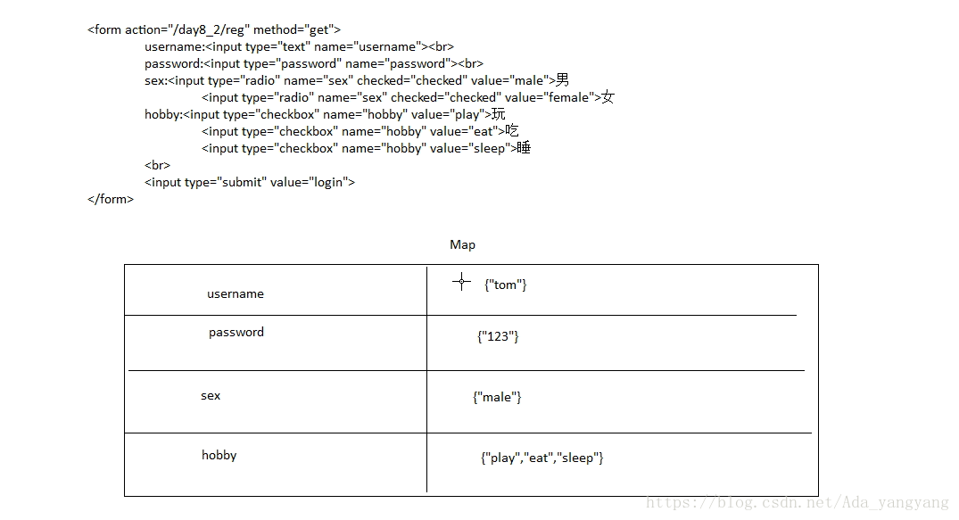 4. getParameterMap --- Map<String, String[]> key:name value:多值
