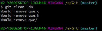 例如我的工作区中新建了qwe文件夹,qwe.c以及qwe.h文件,此时我执行git clean -dn,会提示你将要删除的文件,如果不加入-d参数,则会提示你将会删除qwe.c和qwe.h文件。