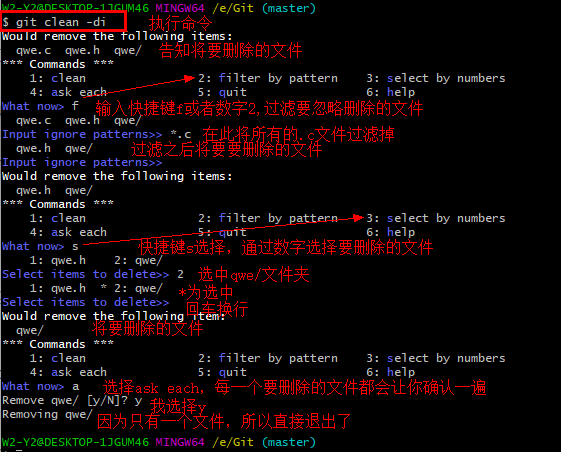 git clean [-d] [-f] [-i] [-n] [-q] [-e <pattern>] [-x | -X] [--] <path>…-d:可以删除文件夹,因为默认是删除的是file