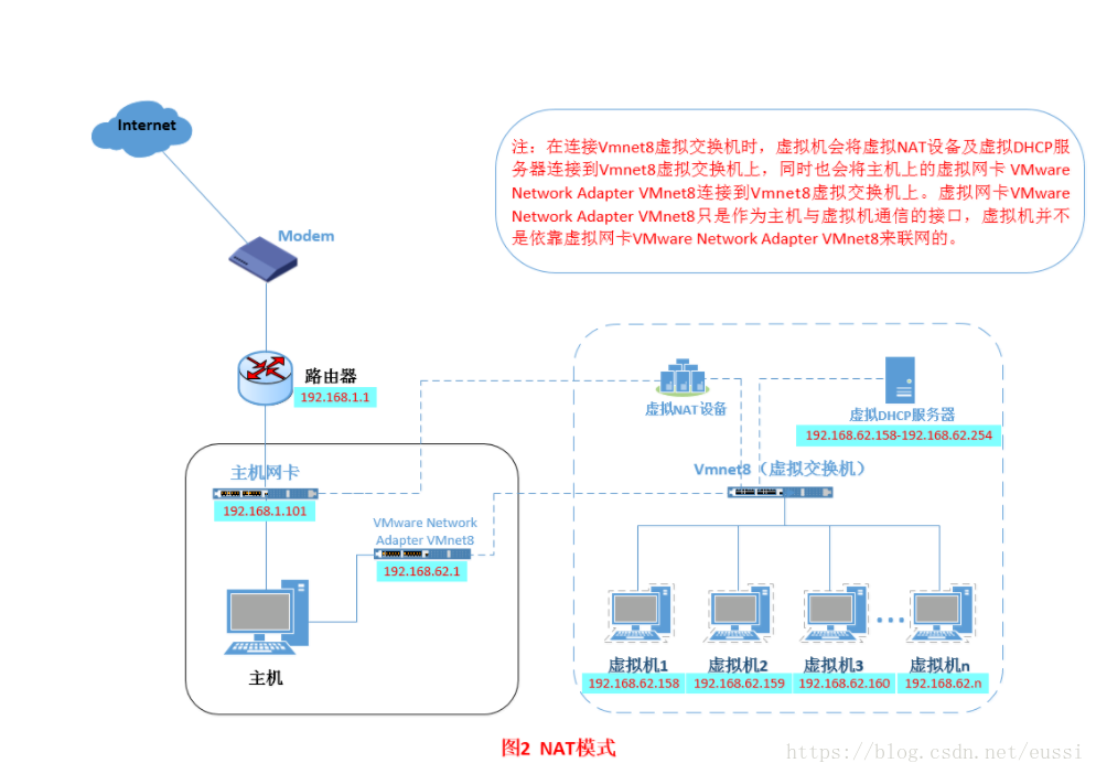 图片参考自;VMWare虚拟机bridged(桥接模式)、NAT(网络地址转换模式)的区别_Helele_Blog的专栏-CSDN博客_桥接模式拓扑图