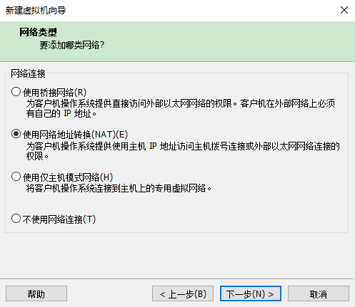 NAT模式:相当于宿主机再构建一个局域网,虚拟机无法和本局域网中的其他真实主机进行通讯。只需要宿主机器能访问互联网,那么虚拟机就能上网,不需要再去配置IP地址,子网掩码,网关。虚拟机和主机能够互相ping通。