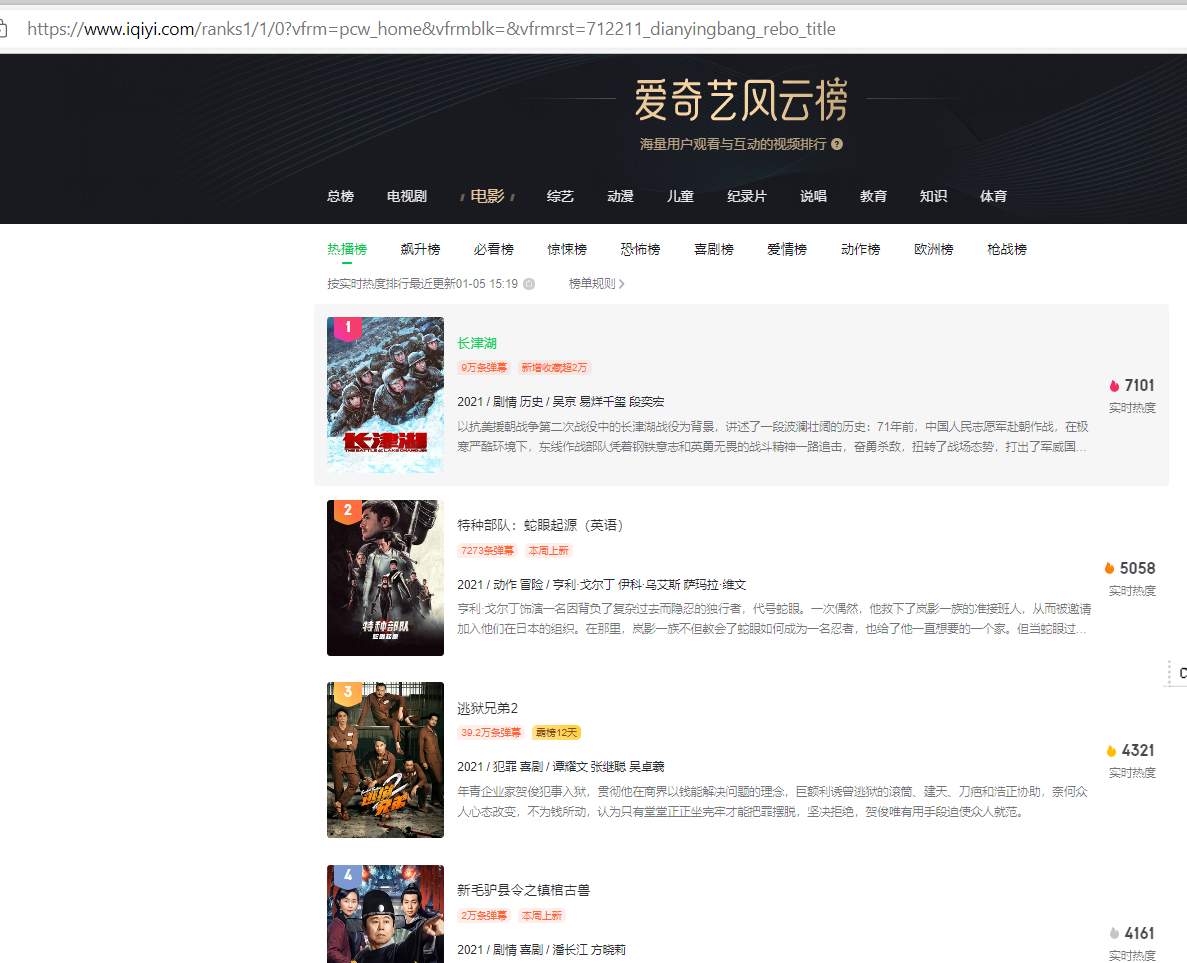 https://www.iqiyi.com/ranks1/1/0?vfrm=pcw_home&vfrmblk=&vfrmrst=712211_dianyingbang_rebo_title网址页面: