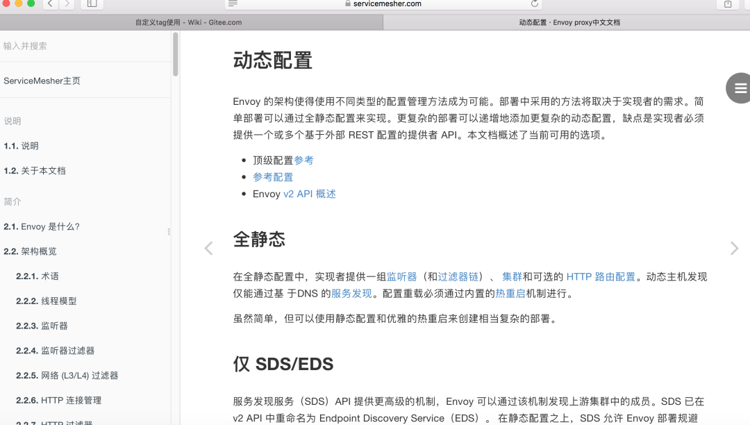 我花了几天时间到处百度,谷歌,技术博客 和 论坛查资料,先后调研了如下文档生成工具: 一、gitbook 开发语言:javascript 用户:50万+ 示例地址:https://www.servicemesher.com/envoy/intro/arch_overview/dynamic_configuration.html