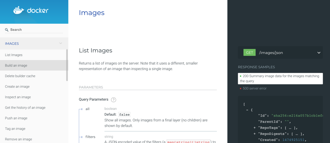 个人建议:如果实时生成文档,但是又不想打一些额外的注解,比如:使用swagger时需要打上@Api、@ApiModel等注解,就可以使用这个。 三、redoc 用户:docker、redocly 示例地址:https://docs.docker.com/engine/api/v1.40/