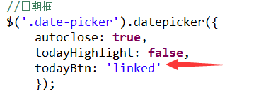 Datepicker日期控件“今天”按钮点击没反应今天在测试过程中,遇到一个问题:日期控件中的“今天”点击后没反应:看js代码也设置了"todayBtn:true"后来看到一篇博客(点击查看原文)上讲,原来是需要将true改为'linked'才行,如下图: