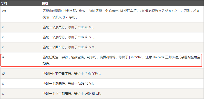 - :b --- 这个我没有查到相关资料,好像是VS专用的。根据在VS中测试推测大概是匹配一些空字符(包含空格制表符回车换行符等)。了解到这里就可以理解上述正则表达式了。接下来两点是关于正则表达式中匹配空白字符的,可以略过不看。