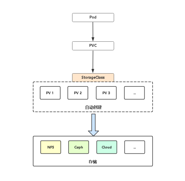 PV静态供给明显的缺点是维护成本太高了! 因此,K8s开始支持PV动态供给,使用StorageClass对象实现。