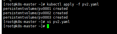 apiVersion: v1kind: PersistentVolumemetadata:name: pv0001spec:capacity:storage: 10GiaccessModes:- ReadWriteManynfs:path: /ifs/kubernetes/pv0001server: 192.168.209.112---apiVersion: v1kind: PersistentVolumemetadata:name: pv0002spec:capacity:storage: 30GiaccessModes:- ReadWriteManynfs:path: /ifs/kubernetes/pv0002server: 192.168.209.112---apiVersion: v1kind: PersistentVolumemetadata:name: pv0003spec:capacity:storage: 60GiaccessModes:- ReadWriteManynfs:path: /ifs/kubernetes/pv0003server: 192.168.209.112