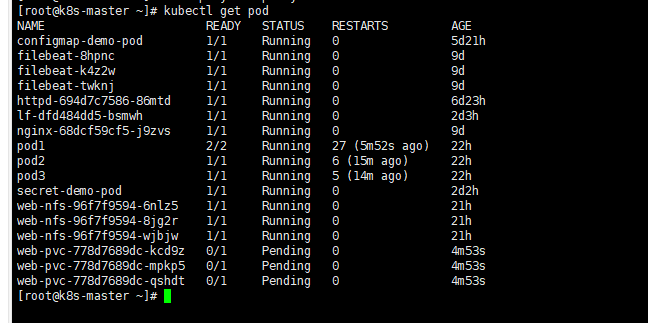 如果不满足条件则pod处于pending状态,无法得到匹配,pvc与pv是一对一关系