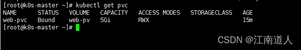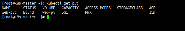 现在在查看刚刚创建的pvc与pod,可以看见都处于绑定运行状态