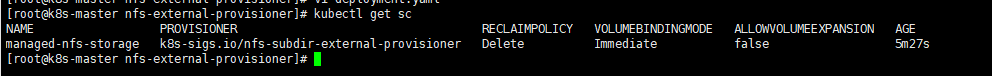 vi deployment-sc.yaml与普通创建pvc不同的是,在创建pvc是要加一个storageClassName参数,它对应上面存储类的name