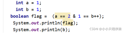 结论:a == 2为假,右边的 b++代码没运行,b = 1