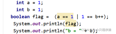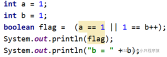 结论:a == 1为真,右边的b++没执行,所以b = 1