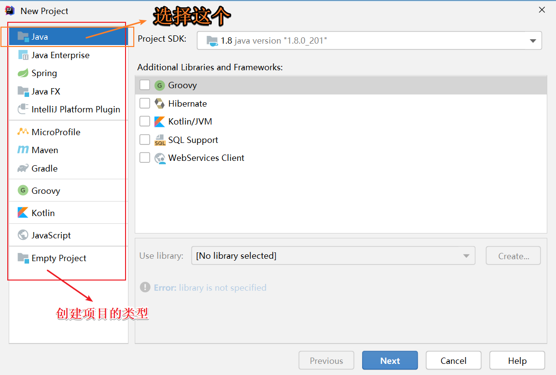 在JavaSE阶段,我们选择创建的项目类型是第一个Java。看下图: