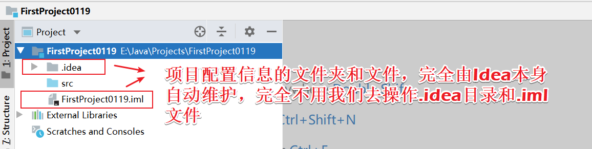 <3> *.iml 我们可以发现,现在的.iml文件就是我们项目的名字,我们要隐藏的这个文件,前面的项目名字是不确定的。因为每次创建的项目,前面的名字都是不确定的。那么我们就写个“*”,无论前面是什么,只要后缀名是“.iml”,都隐藏起来。
