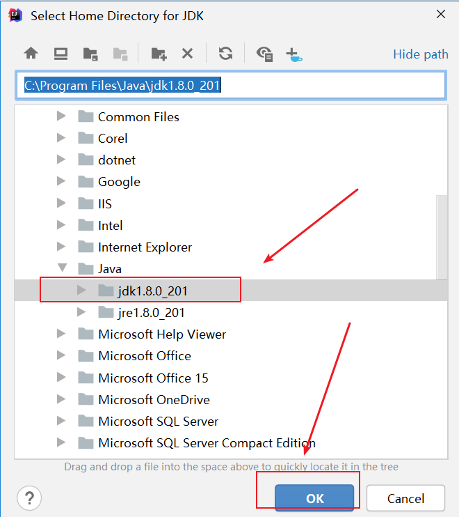 我们可以找到自己安装JDK的目录,自行添加。注意,不要打开这个目录,直接选择这个JDK即可: