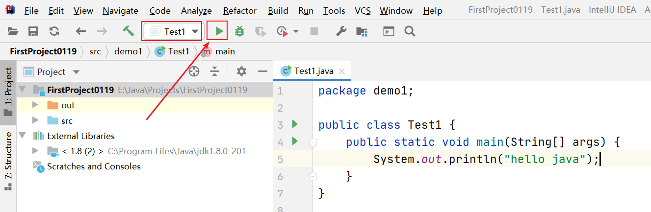 System.out.println("hello java");
