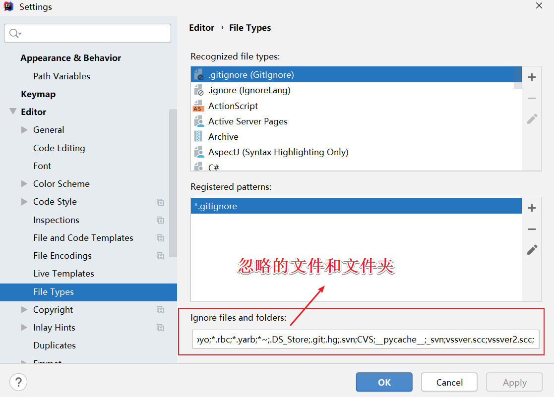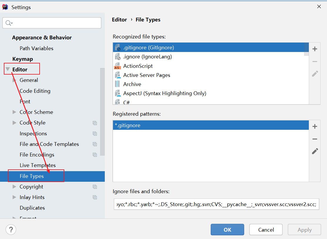 2、找到 Editor--> File Types