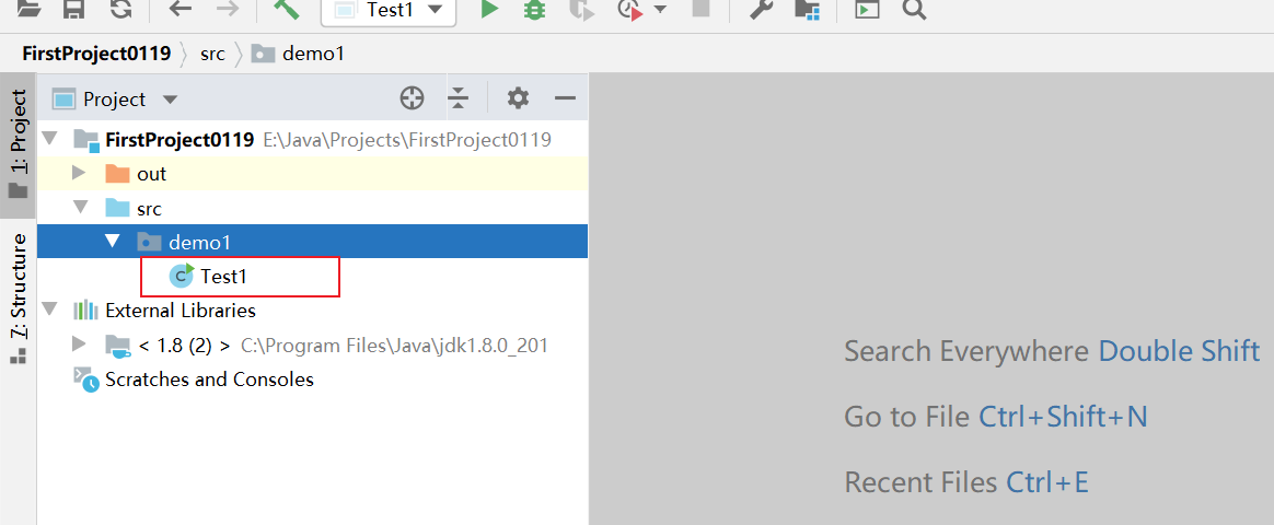 执行Test1中主方法。