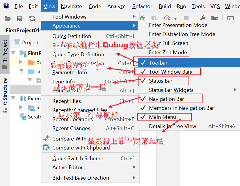 View(视图) --> Appearance (外观)--> 常用的界面