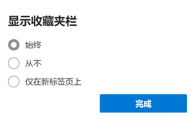 Microsoft Edge 收藏夹如何显示在界面上方?1.点击界面右上角,第三个图标收藏夹2.进入下面界面,点击...三个点的那个图标3.进入设置界面,点击显示收藏夹。倒数第二个4.设置为始终,点击完成即可。界面上方显示出来了版权声明:本文为xuxudeta原创文章,遵循CC 4.0 BY-SA版权协议,转载请附上原文出处链接和本声明。原文链接:https://blog.csdn.net/xuxudeta/article/details/116546987