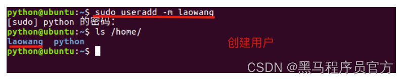 - useradd 命令的使用需要使用管理员权限,前面需要加上 sudo