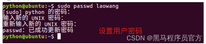 给其它用户设置密码,需要使用: sudo passwd 用户名