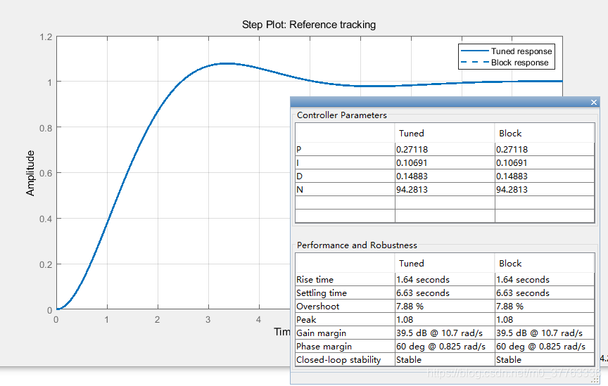 先看使用 Simulink 自带的仿真结果,其PID参数整定的情况: