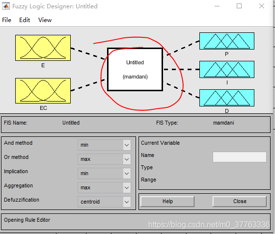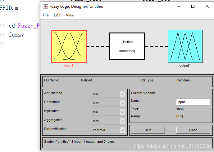 (2)命令行输入fuzzy,打开模糊规则编辑器。