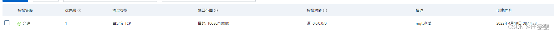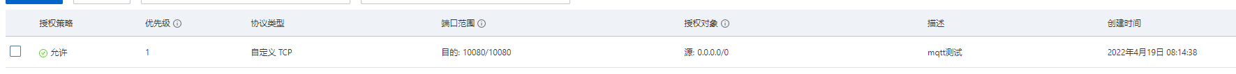 这一步很重要,因为阿里云是保护自己的服务器的默认的端口都是禁用的,后期需要使用的端口自己要去添加,配置mqtt服务器需要用到一个端口,这里就先添加一个 10080.