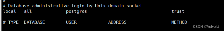#在文件pg_hba.conf中,需要对“数据库管理登录通过Unix域套接字(应该在第85行)下的设置从peer更改为trust,然后重新启动Docker容器。