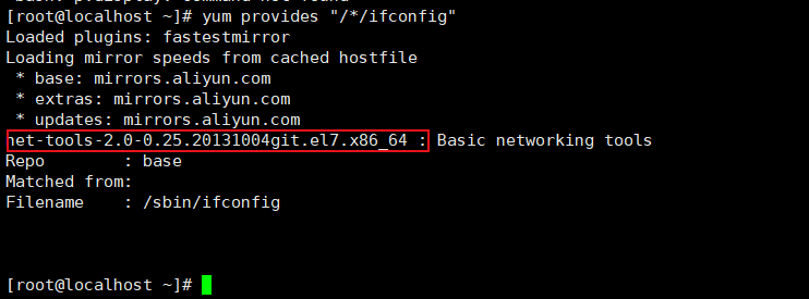 yum install -y net-tools-2.0-0.25.20131004git.el7.x86_64 #多个可选安装包时,选择第一个包