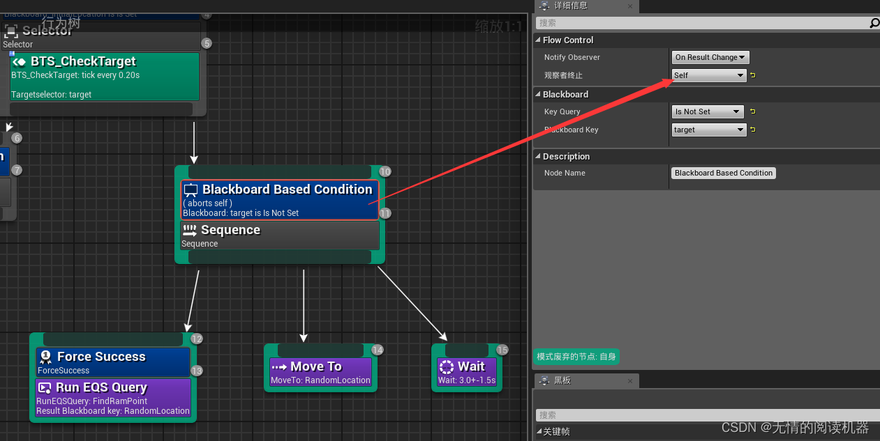 这里设为self,当target为is set ,立马放弃运行下面的叶子节点。