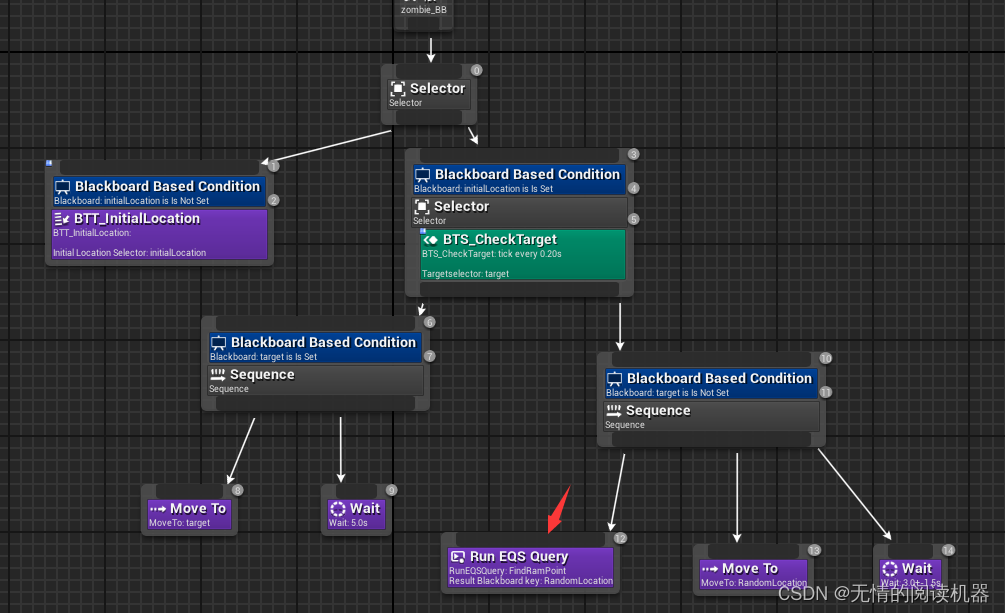那是因为僵尸找随机点的eqs加了一个距离过滤,超出初始点一定的范围的点就是无效点了。所以僵尸就不会动了。