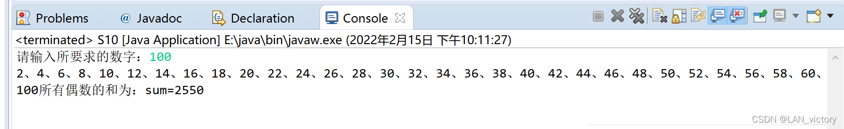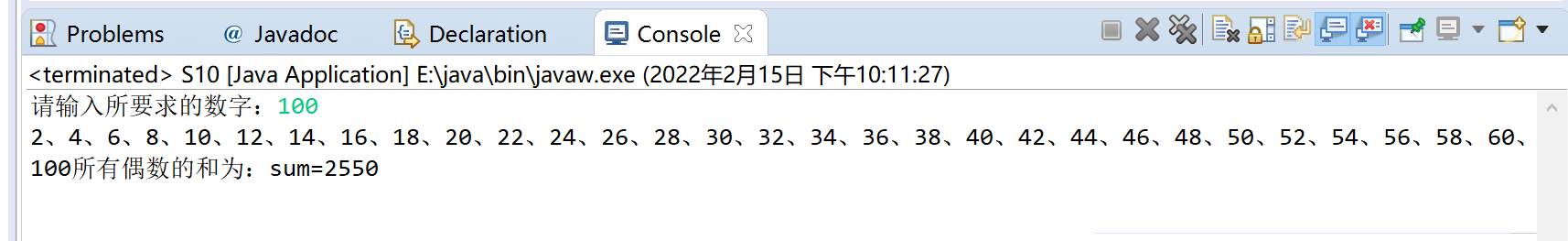System.out.println(number+"所有偶数的和为:sum="+sum);