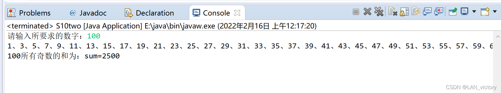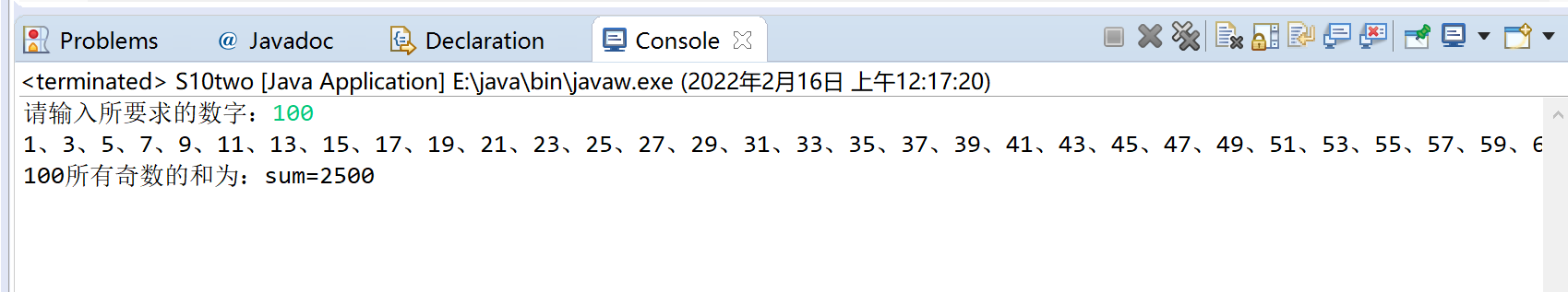 System.out.println(number+"所有奇数的和为:sum="+sum);