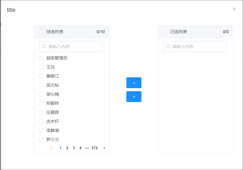 el-transfer 穿梭框左侧数据太多数据比较多时,不能进行分页,决定自己封装一个!